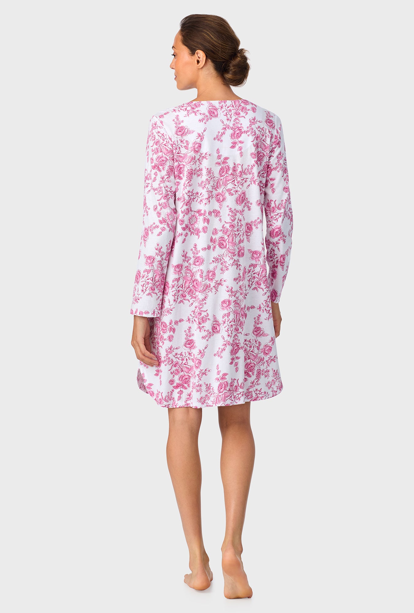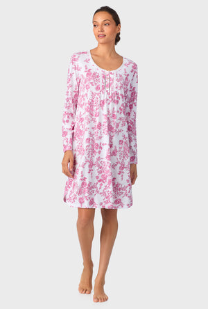 Berry Toile Short Long Sleeve Cotton Knit Nightshirt